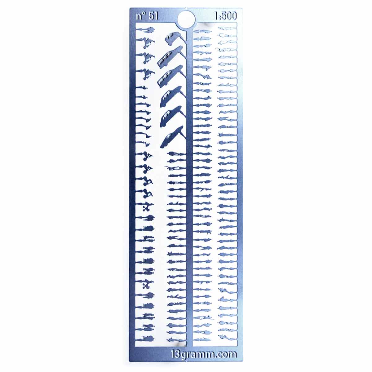 The small and filigree architectural figures in N°51 1:500 scale are extremely faithful to detail and manufactured with great attention to detail. Produced from highly refined spring steel, they have a timeless but elegant design and are almost unlimited in durability. The figures are punched into a stainless steel frame and provided with a fine predetermined breaking point so that each figure can be removed individually.