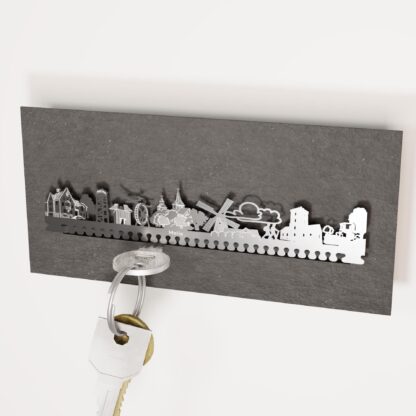 The attached silhouette showcases the most famous and beautiful motifs of Melle with great attention to detail. From historic landmarks to natural scenery, this key board captures the essence of Melle and brings it to your own hallway. It’s a thoughtful gift idea for Melle residents, visitors, or anyone who holds a special place in their heart for this town.