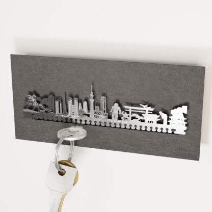 Scope of delivery: The key board is made of wood with the dimensions 150 x 80 x 30 mm and with deep slot to insert the keys and is delivered in a gift box. The Tokyo silhouette is made of high quality spring steel and is magnetically interchangeable, and interchangeable with all other 13gramm silhouettes.