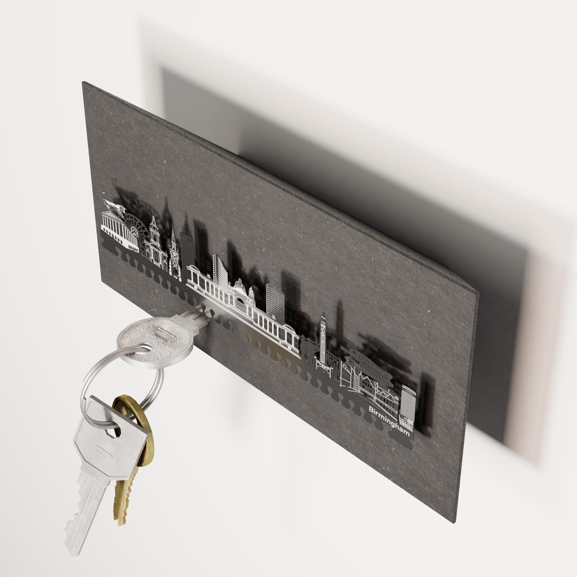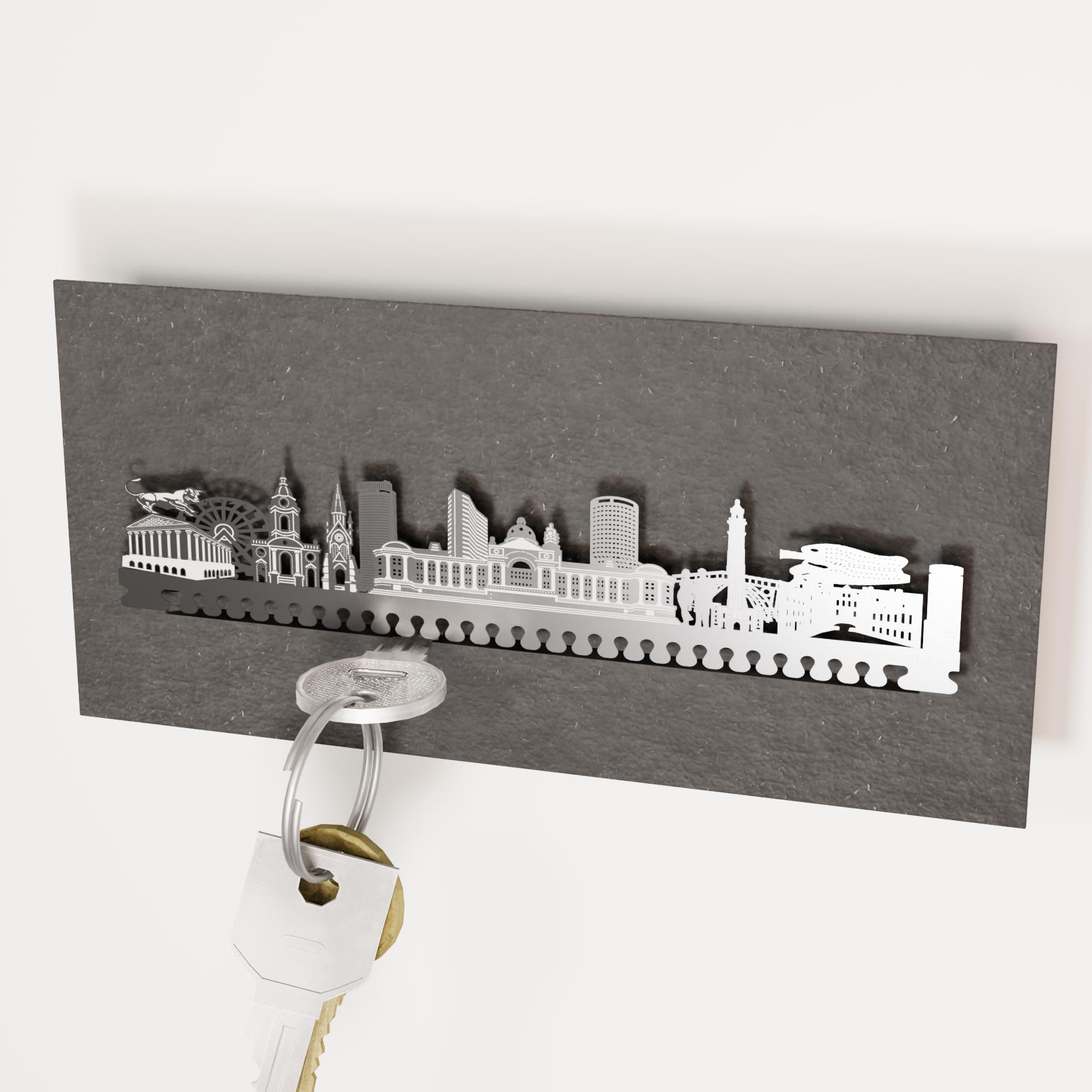 Découvrez maintenant le porte-clés Birmingham Skyline et ajoutez une touche de Birmingham à votre entrée. Un accessoire pratique et élégant qui fera du rangement de vos clés une expérience très spéciale.
