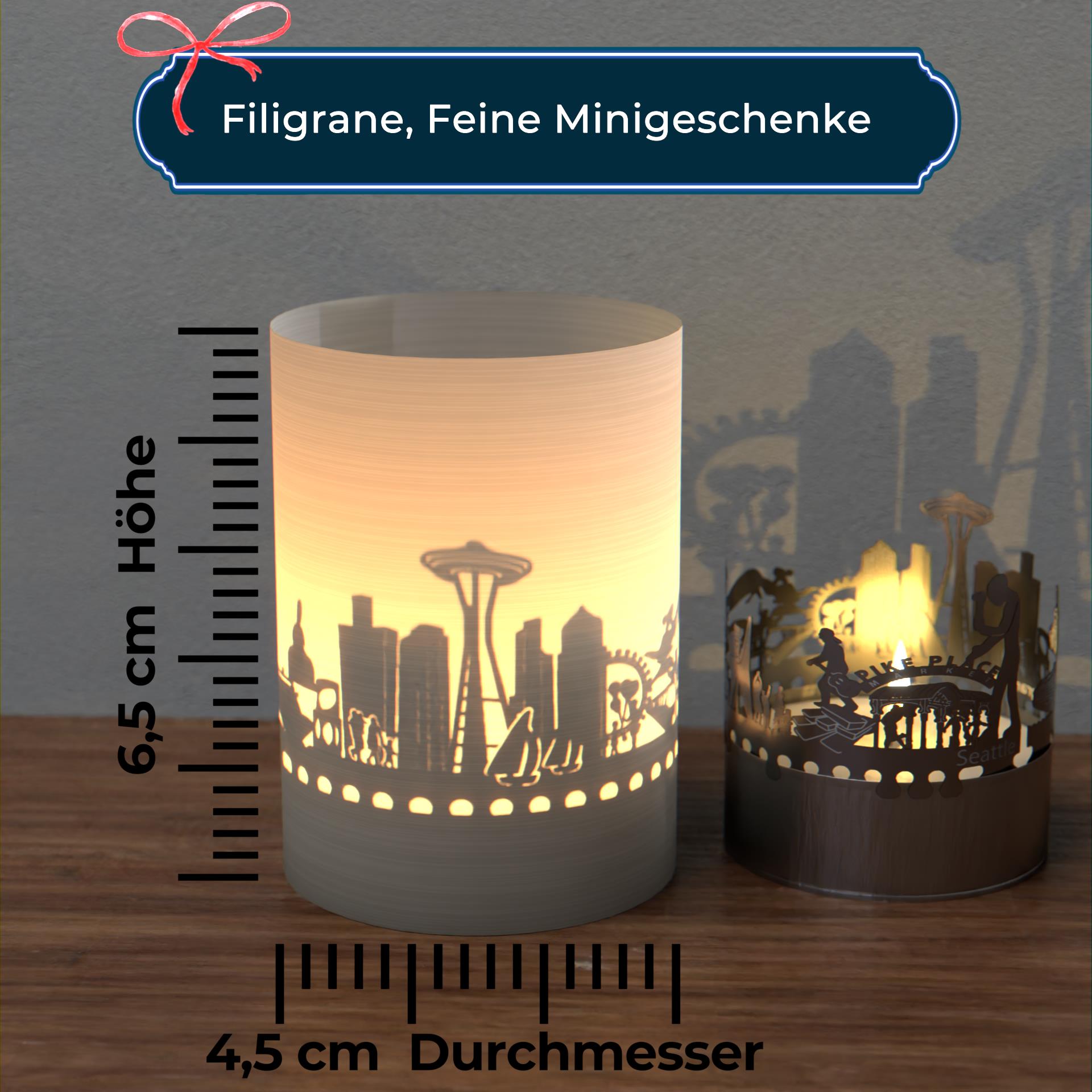 Tu es à la recherche d’un souvenir spécial ou d’un accessoire d’intérieur génial qui te rappellera ton voyage à Seattle ? Alors nous avons exactement ce qu’il te faut ! Notre tube cadeau Seattle enthousiasme par sa bougie à motif, qui donne vie à l’incomparable skyline de Seattle dans ton intérieur. Grâce à l’écran de projection fourni, le jeu d’ombres est particulièrement bien mis en valeur et te transporte au cœur de la ville des grains de café et de la musique grunge.