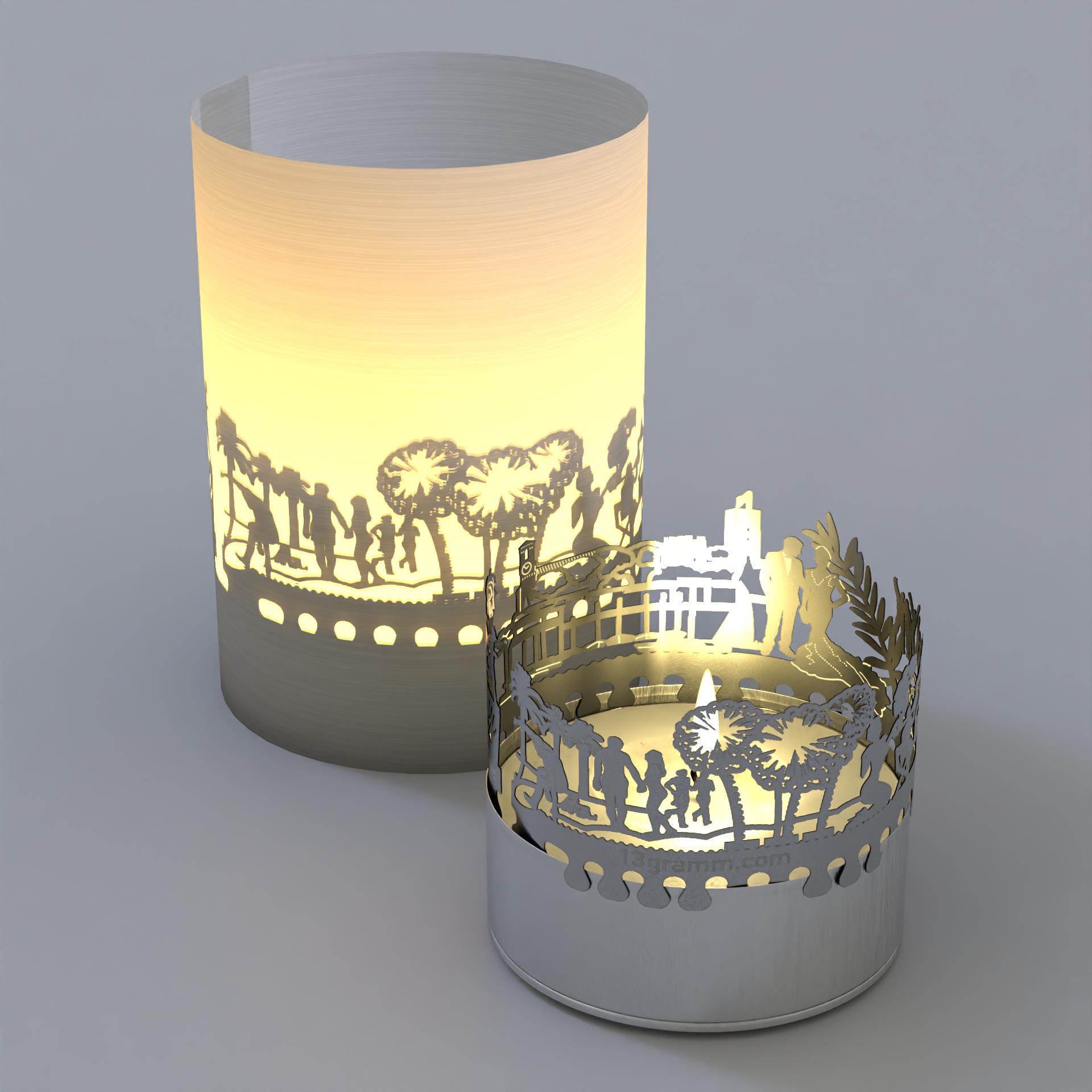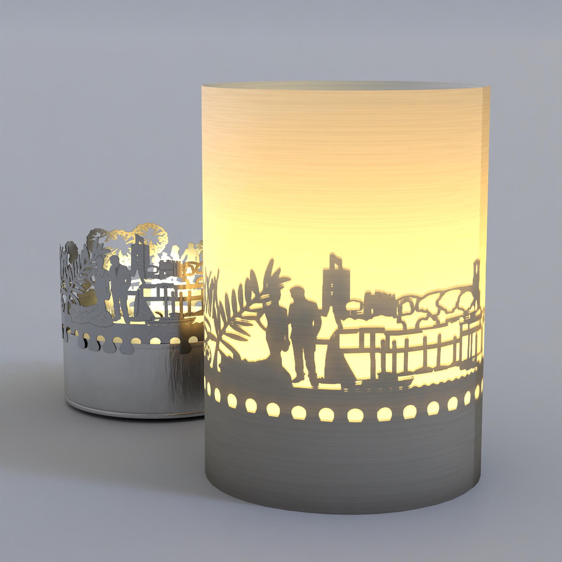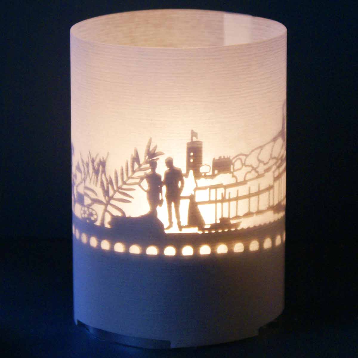 - Filigrane Cannes Silhouette, zusammen mit Teelicht und Projektionsschirm in praktischer Tube-Box – als Souvenir, Andenken oder zum Weiterverschenken ideal geeignet