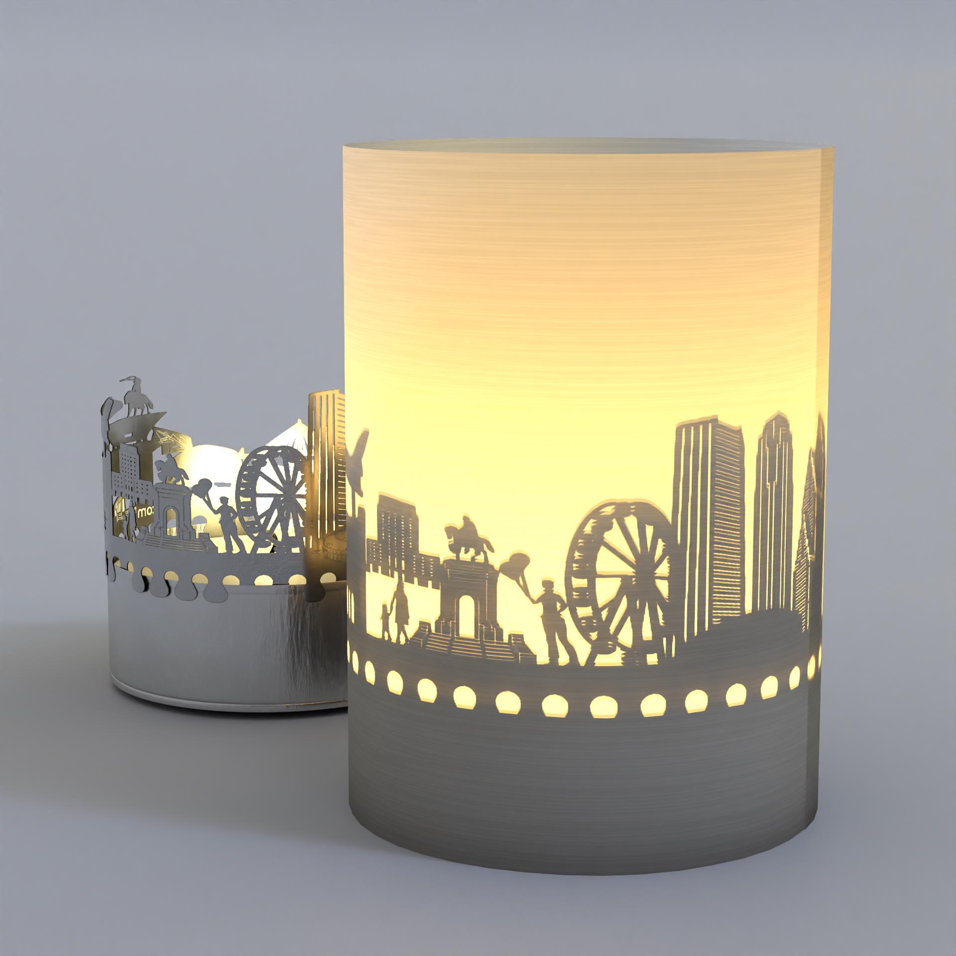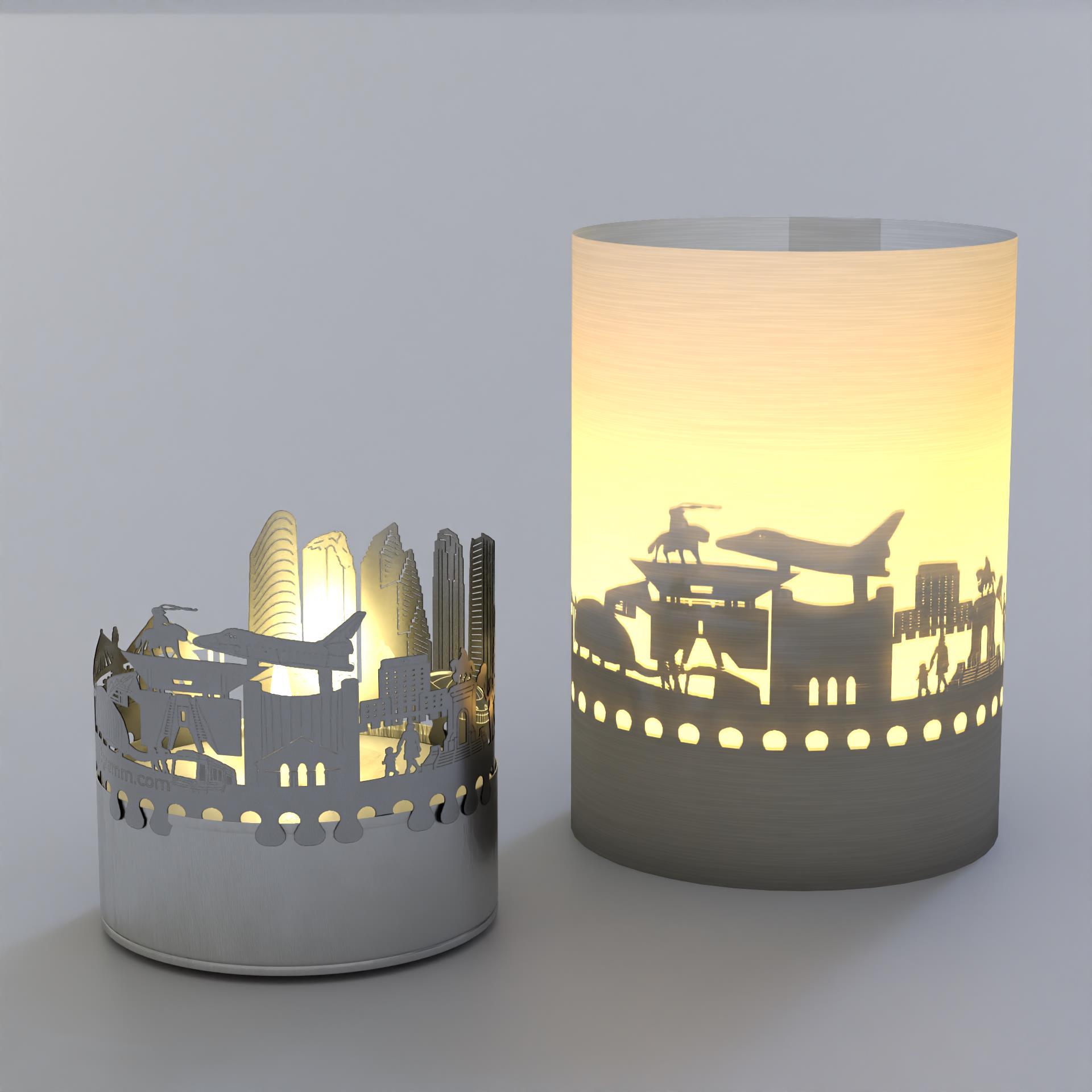 - Filigrane Houston Silhouette, zusammen mit Teelicht und Projektionsschirm in praktischer Tube-Box – als Souvenir, Andenken oder zum Weiterverschenken ideal geeignet