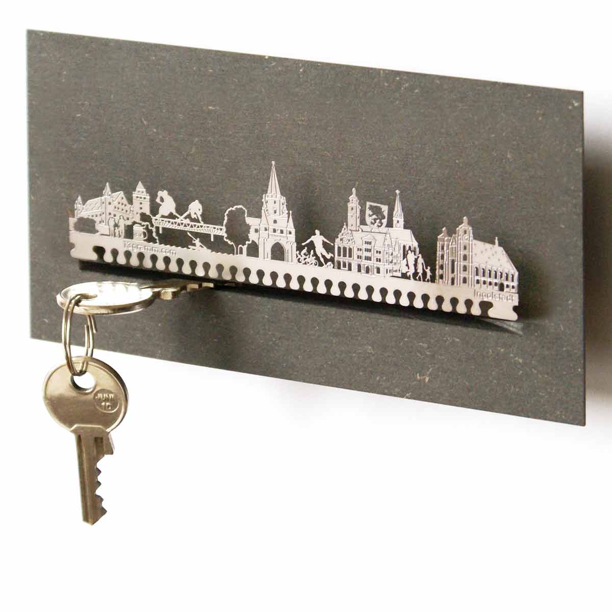 • Edeles, schlichtes Wohnaccesoire mit Ingolstadt Skyline – das feine Ingolstadt Souvenir Schlüsselbrett