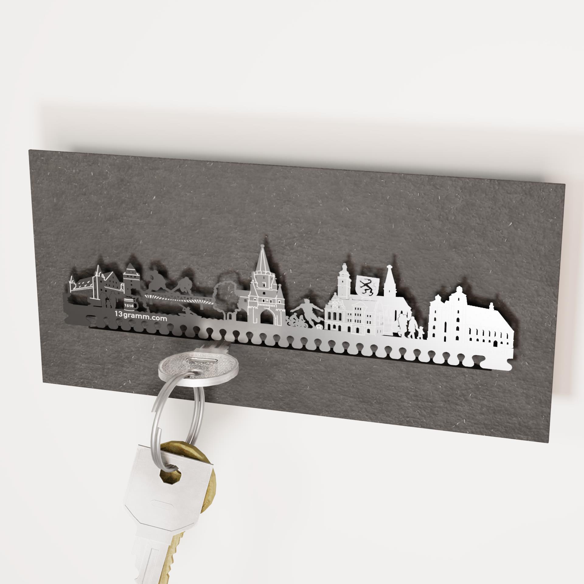 Das Ingolstadt Skyline Schlüsselbrett ist ein besonderes Accessoire, das den Charme der Stadt aufgreift und praktisch zugleich ist. Mit Liebe zum Detail haben wir die bekanntesten und schönsten Motive von Ingolstadt auf einer hochwertigen Silhouette festgehalten. Das Schlichte und edle Design des Schlüsselbretts wird jeden Raum aufwerten.