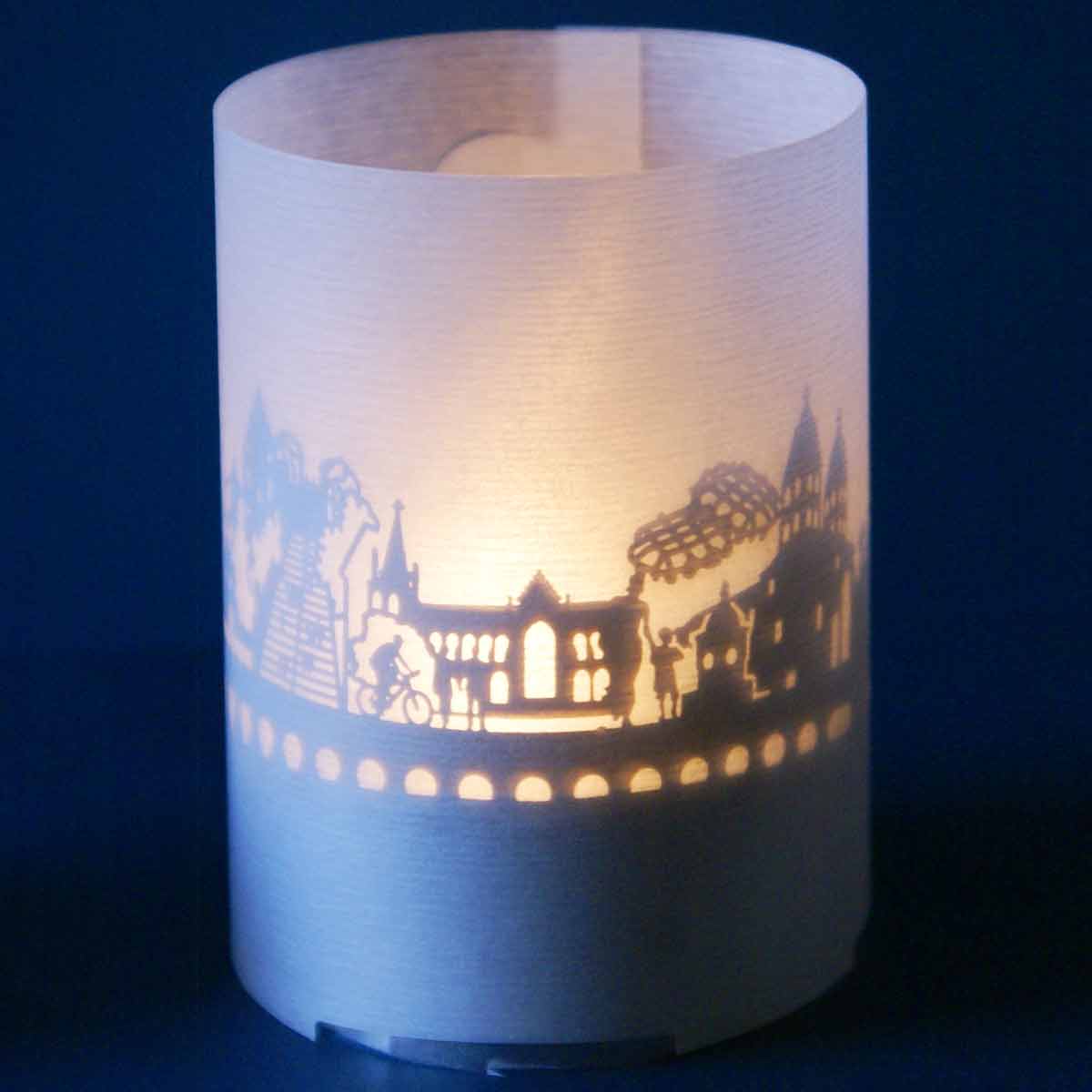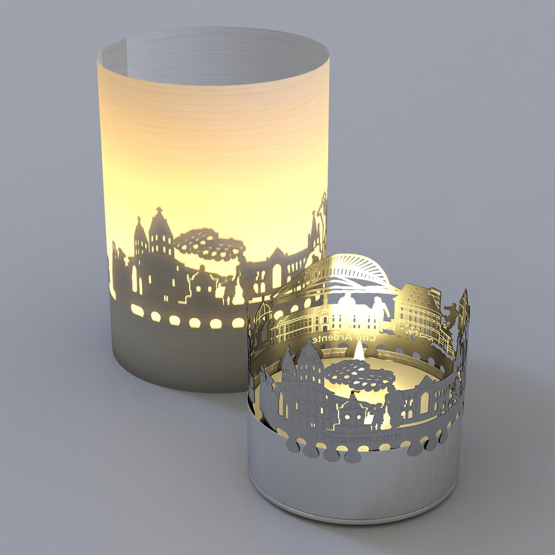 • Filigrane Lüttich Silhouette, zusammen mit Teelicht und Projektionsschirm in praktischer Tube-Box – als Souvenir, Andenken oder zum Weiterverschenken ideal geeignet