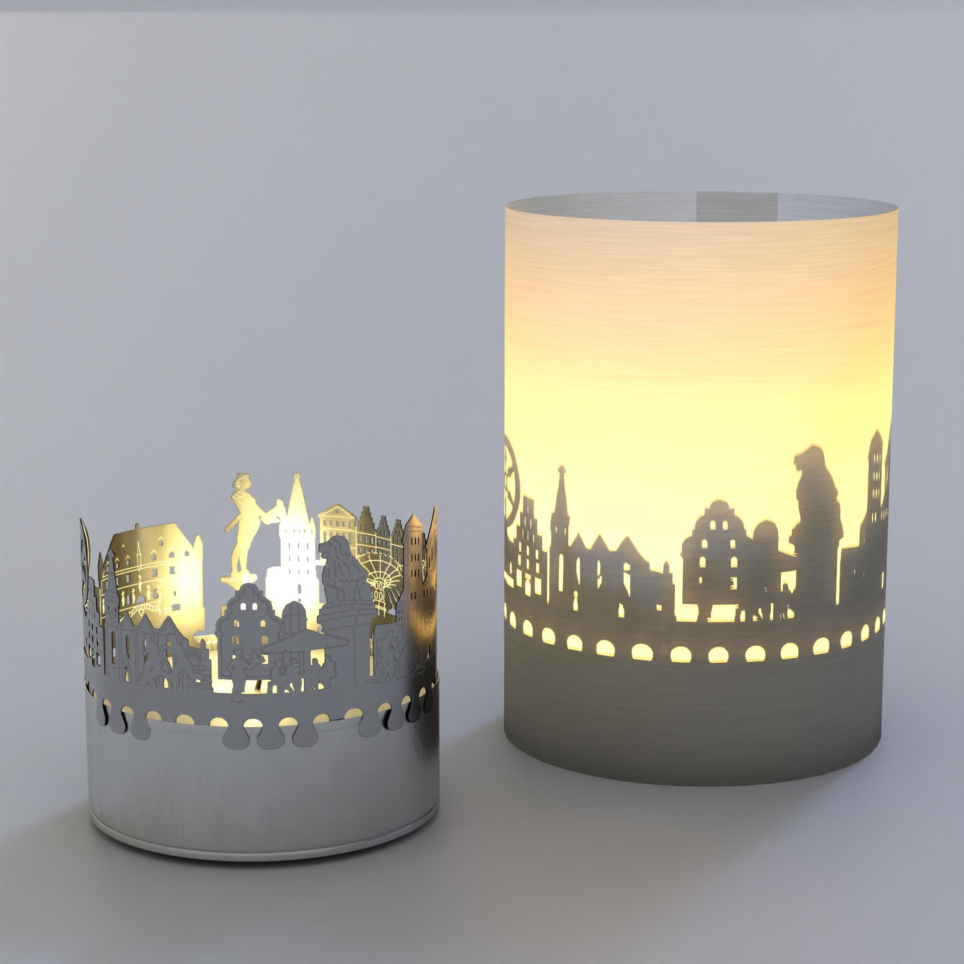 - Filigrane Osnabrück Silhouette, zusammen mit Teelicht und Projektionsschirm in praktischer Tube-Box – als Souvenir, Andenken oder zum Weiterverschenken ideal geeignet